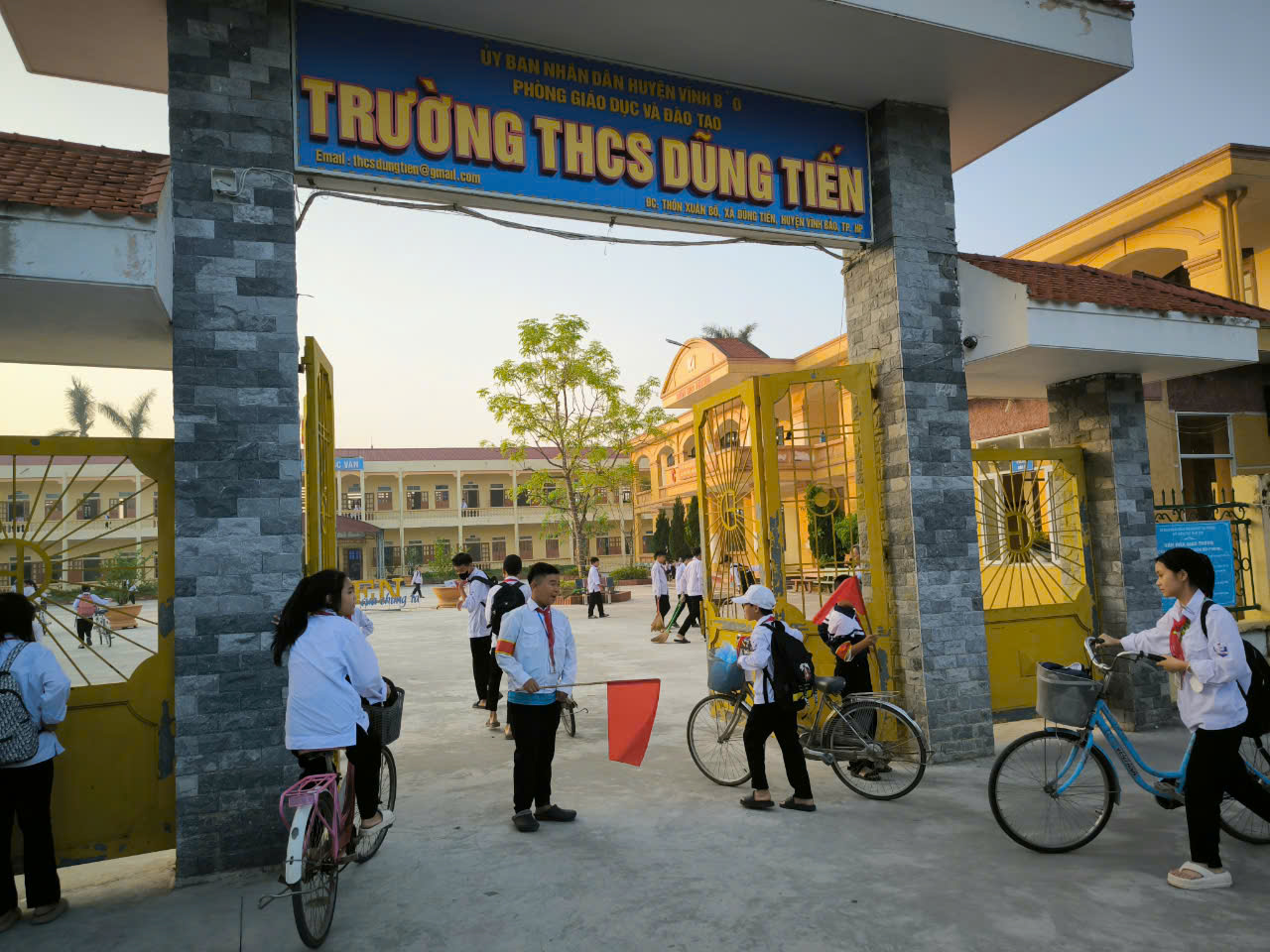 Hình ảnh an toàn giao thông tại trường THCS Dũng Tiến mỗi buổi sáng . Các em trong đội trực ban sao đỏ của trường đã rất tích cực tham gia công tác an toàn giao thông trước công trường vào mỗi sáng cùng với các thầy cô trực ban của nhà trường.