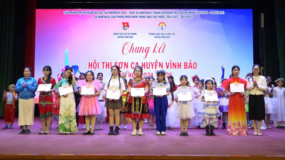 Ban thường vụ Huyện Đoàn phối hợp với Phòng giáo dục và Đào tạo huyện Vĩnh Bảo tổ chức chung kết Hội thi Sơn ca năm học 2024- 2025, liên đội trường THCS Dũng Tiến rất vinh dự có 02 em lọt vào vọng chung kết của hội thi. Em Hoàng Hà Linh ( 7C) tham gia với bài hát " Đảo xanh" đã xuất sắc đạt giải Nhì, em Phạm Thị Yến Nhi ( 9A) với bài hát " Thời học sinh" và đạt giải ba của hội thi.