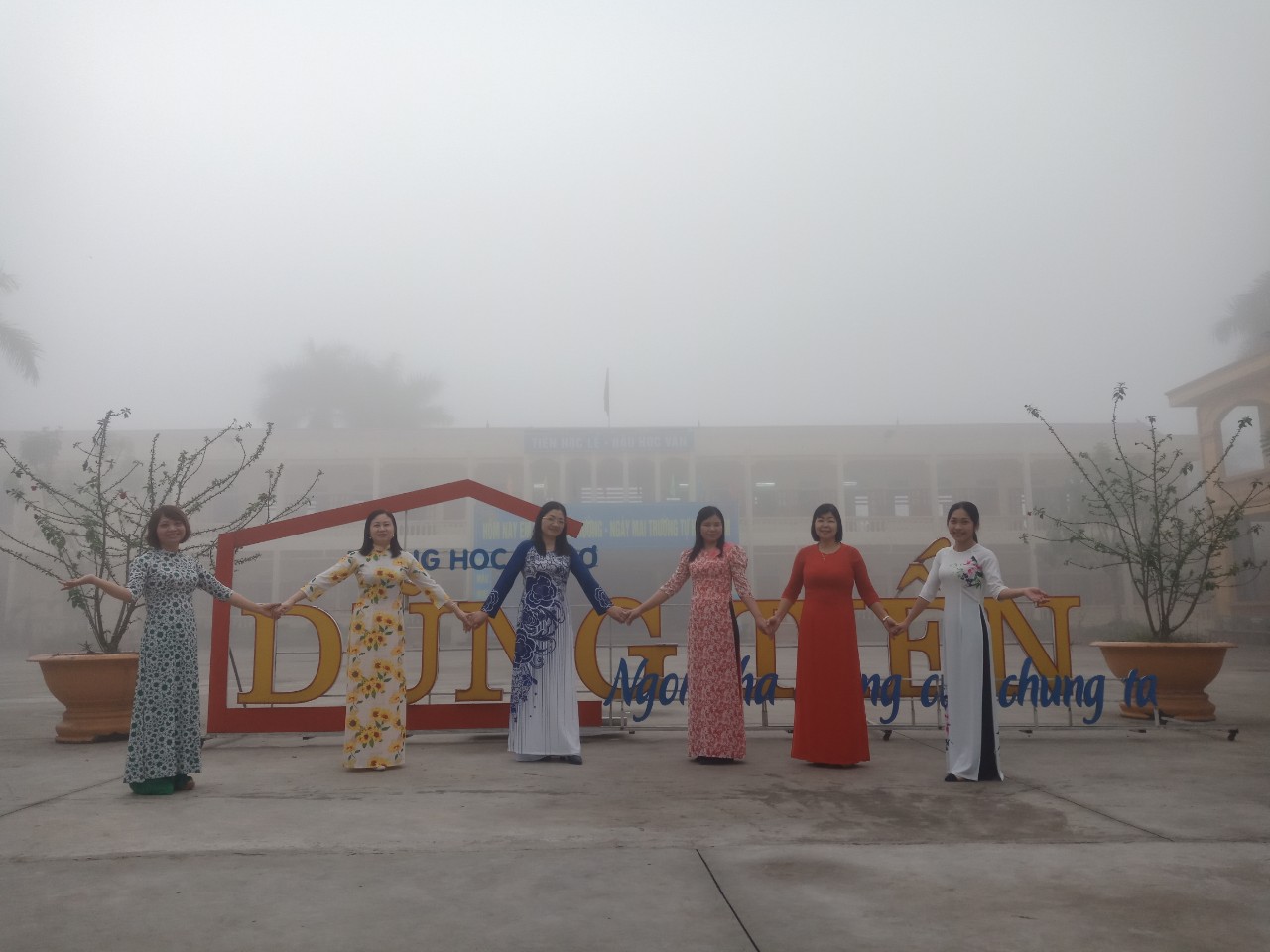 Cán bộ, công nhân viên nữ Trường THCS Dũng Tiến hưởng ứng tuần lễ áo dài.