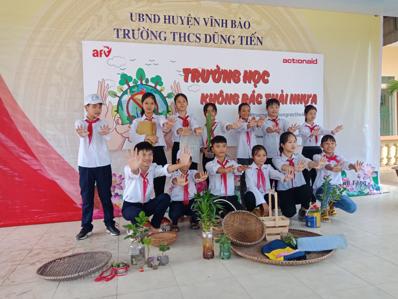 Học sinh tham gia hội thi tìm hiểu về trường học an toàn không rác thải nhựa