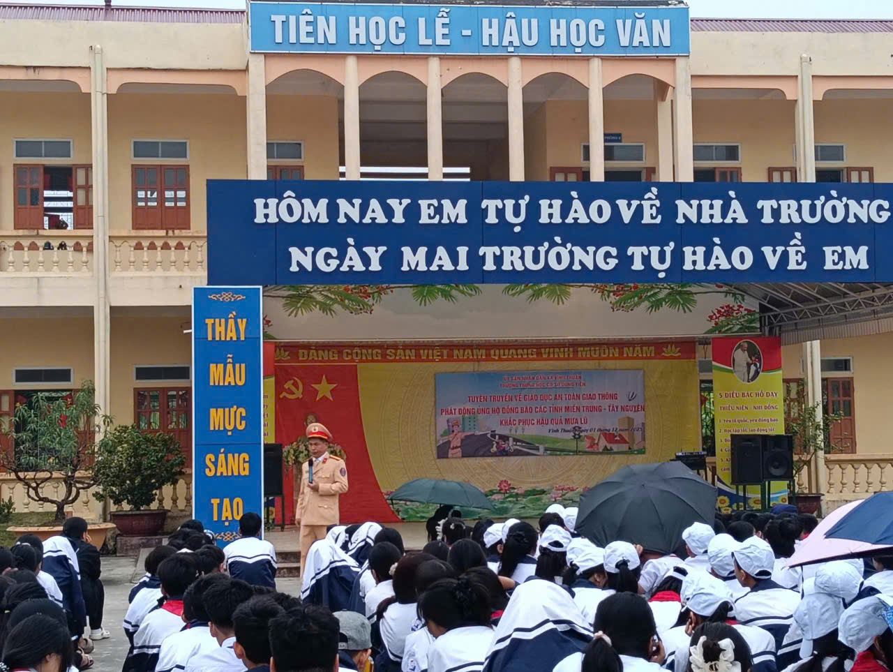 Sáng 01/12/2025, công an xã Vĩnh Thuận phối hợp với trường Trung học cơ sở Dũng Tiến tổ chức tuyên truyền giáo dục chuyên đề " An toàn giao thông" Tại buổi tuyên truyền, học sinh nhà trường đã được nghe đại diện tổ công tác Công an thành phố Hải Phòng phổ biến các quy định cơ bản về an toàn giao thông, nhấn mạnh tầm quan trọng của việc đội mũ bảo hiểm, tuân thủ tín hiệu giao thông và không điều khiển phương tiện khi chưa đủ tuổi hoặc không có giấy phép lái xe. Các ví dụ thực tế về tai nạn giao thông. Qua đó giúp học sinh hiểu rõ hậu quả nghiêm trọng của việc vi phạm luật lệ. An toàn giao thông là trách nhiệm và nghĩa vụ của mỗi chúng ta, đặc biệt là các bạn học sinh – những mầm non tương lai của đất nước. Mỗi ngày đến trường, các bạn không chỉ mang theo sách vở, mà còn mang theo ý thức, trách nhiệm về việc tham gia giao thông an toàn để đảm bảo an toàn cho bản thân, gia đình Hưởng ứng lời kêu gọi quyên gọi, ủng hộ đồng bào các tỉnh miền Trung- Tây Nguyên khắc phục hậu quả sau mưa lũ, toàn thể cán bộ giáo viên, nhân viên, học sinh và phụ huynh trường THCS Dũng Tiến đã tích cực tham gia, chung tay đóng góp với tinh thần đoàn kết, sẻ chia. Kết quả vận động: Tiền mặt: 21. 399.000 đồng ( Hai mươi mốt triệu, ba trăm chín mươi chín nghìn đồng). Nhà trường trân trọng ghi nhận và gửi lời cảm ơn sâu sắc đến sự đồng lòng, nhiệt tình đóng góp của quý thầy cô, các em học sinh và phụ huynh. Những tấm lòng hảo tâm này sẽ góp phần thiết thực giúp đồng bào vùng lũ vượt qua khó khăn, ổn định cuộc sống. Đồng thời lan tỏa những giá trị nhân văn tốt đẹp trong cộng đồng.