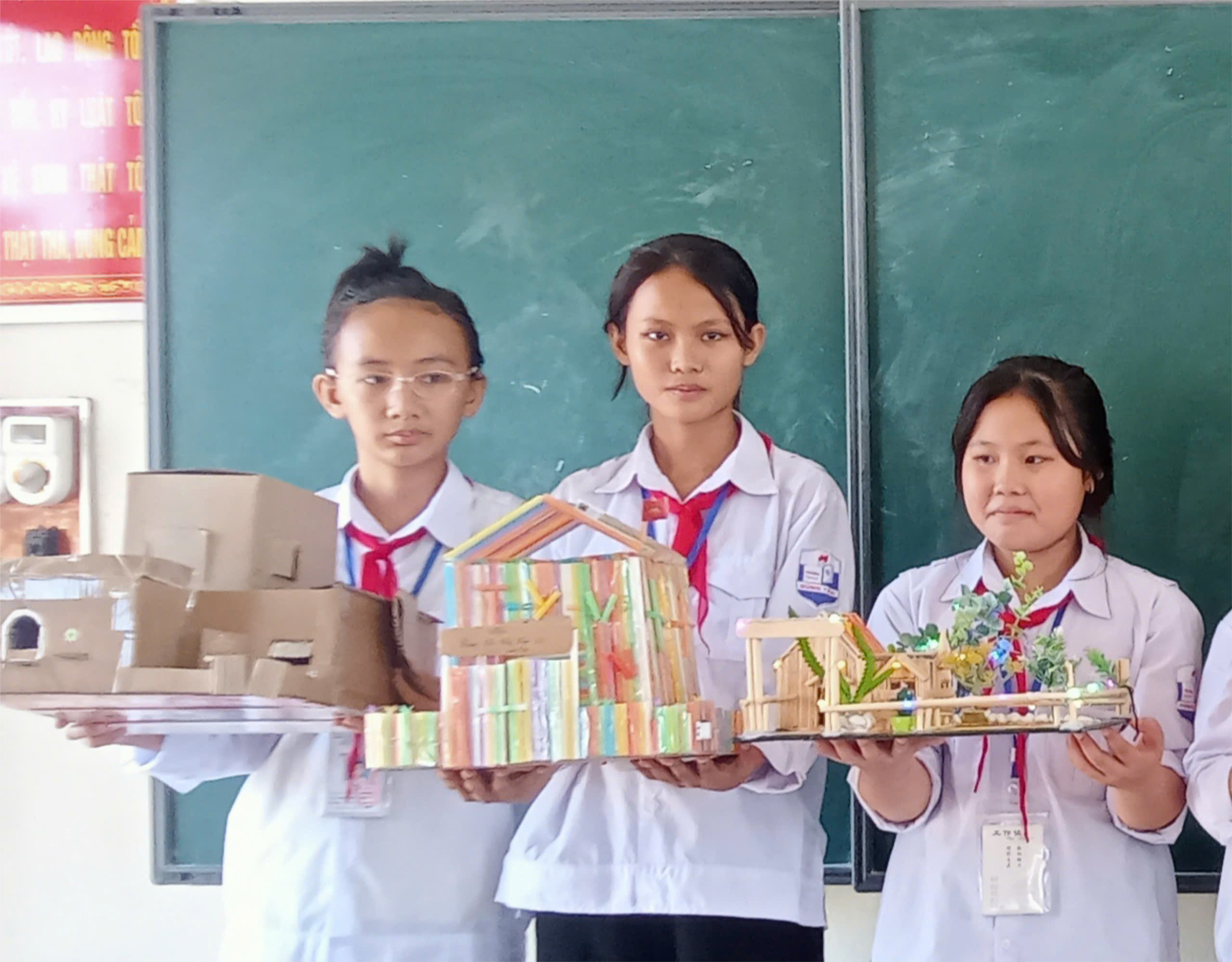 Dự án: Ngôi nhà của em. Học sinh thiết kế và lắp ráp hoàn thiện một mô hình ngôi nhà bằng vật liệu có sẵn trong gia đình. ( bìa, giấy màu, ống nhựa, trang trí đèn...)