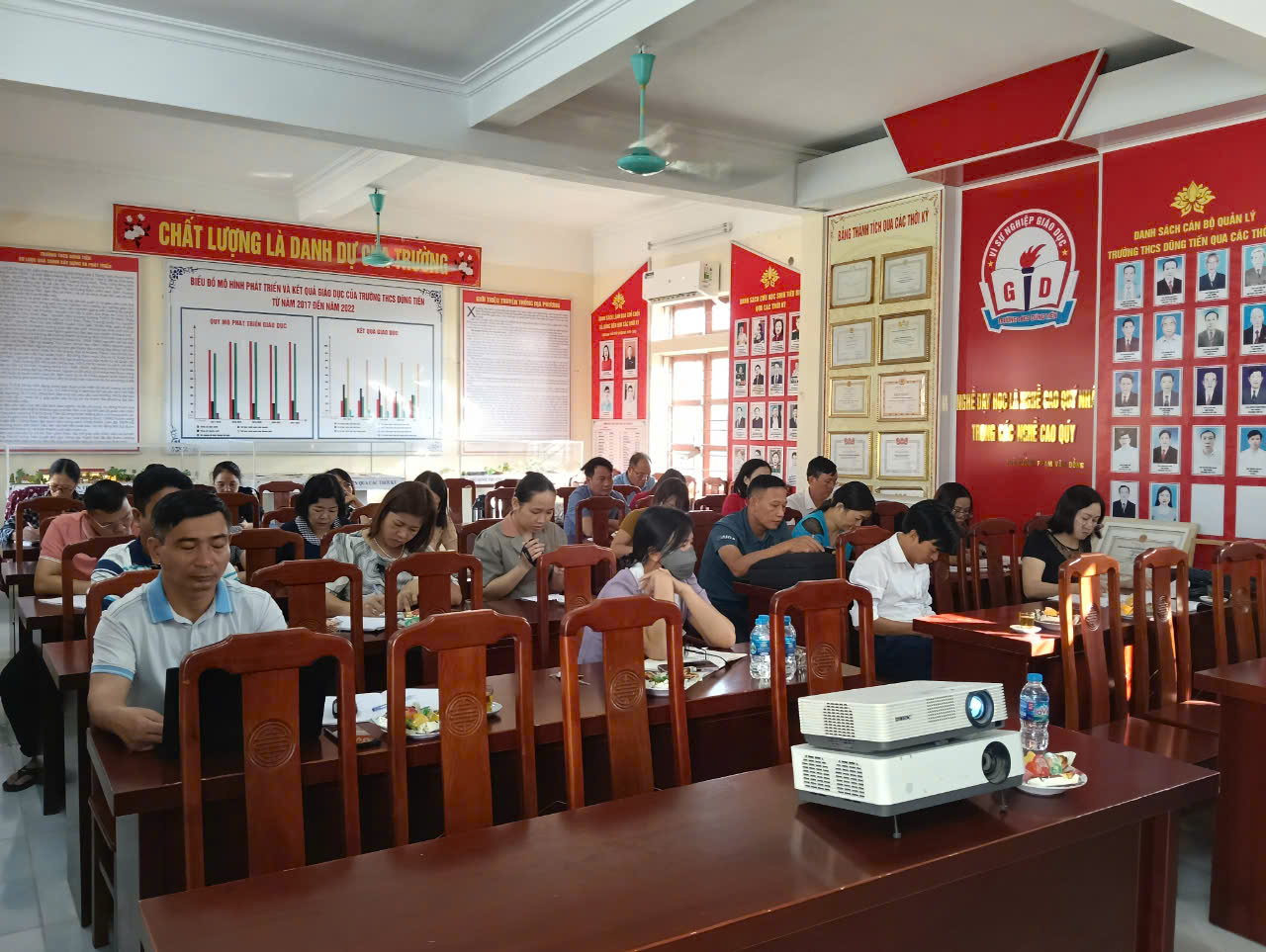 Sáng ngày 5 tháng 10, tại Phòng truyền thống -Trường THCS Dũng Tiến diễn ra Hội nghị Bồi dưỡng chính trị. Tại Hội nghị này, toàn thể giáo viên, nhân viên Trường THCS Dũng Tiến được bồi dưỡng về tình hình chính trị: Cục diện thế giới ngày nay và đường lối đối ngoại của Đảng. Quán triệt Nghị quyết của Đảng bộ huyện Vĩnh Bảo về kinh tế, văn hóa xã hội, quốc phòng, an ninh và đặc biệt là các vấn đề liên quan đến giáo dục...