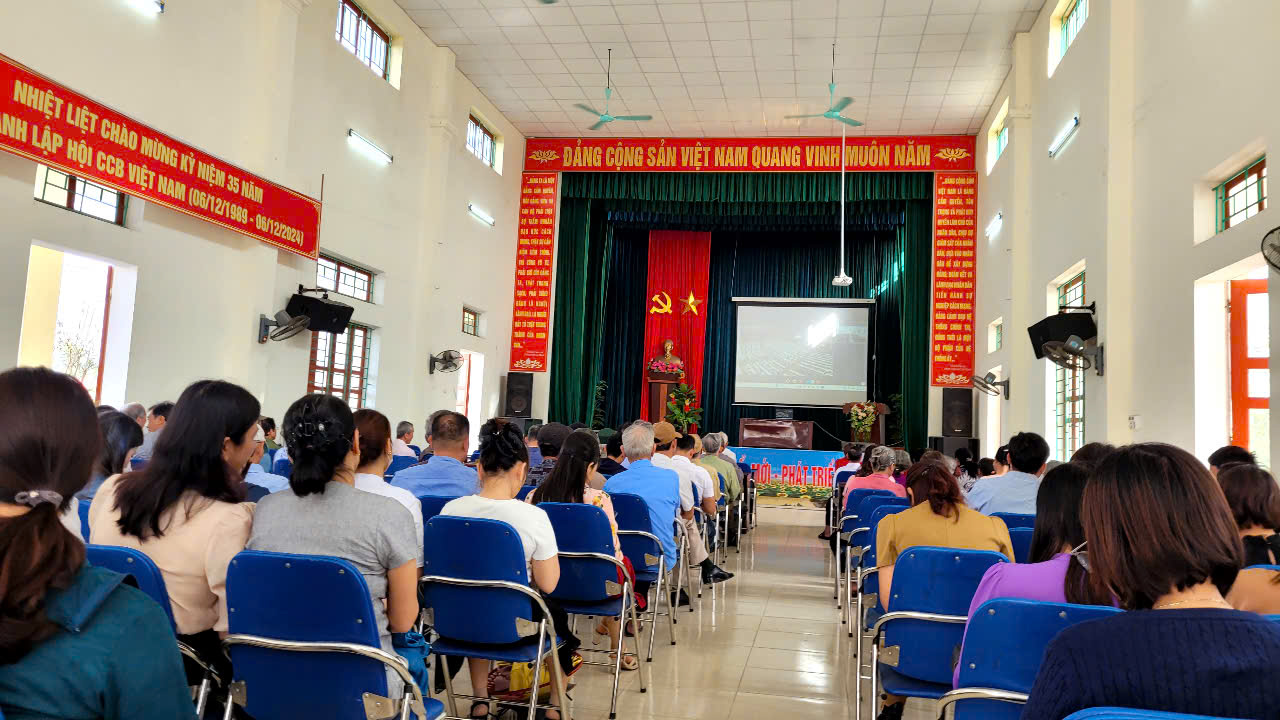 (Hội nghị trực tuyến- điểm cầu từ Hội trường UBND xã Dũng Tiến)