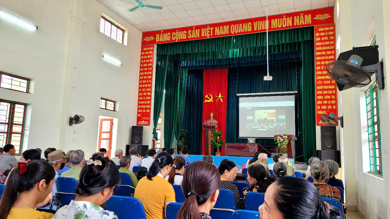 (Hội nghị kết nối trực tuyến- điểm cầu từ Hội trường Nhà văn hóa xã Dũng Tiến)