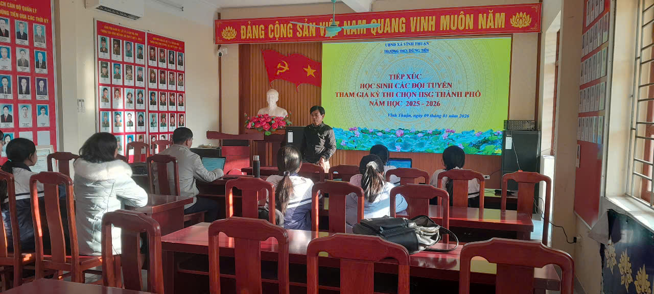 ❤️Nhằm kịp thời động viên, khích lệ tinh thần học tập của các em học sinh trước kỳ thi Học sinh giỏi cấp thành phố năm học 2025–2026, chiều ngày 09/1/2026, trường THCS Dũng Tiến đã tổ chức buổi tiếp xúc học sinh các đội tuyển tham dự kỳ thi Học sinh giỏi cấp thành phố.