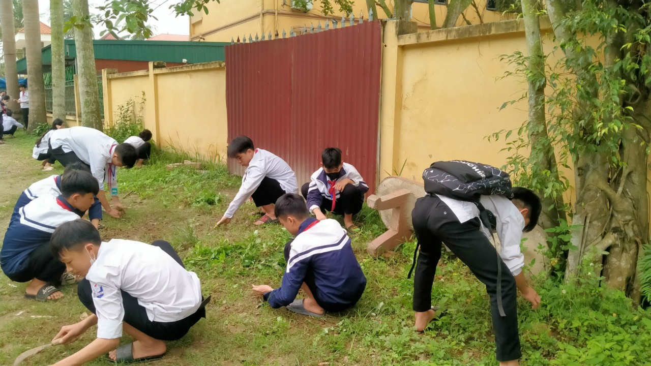Tập thể lớp 7A tham gia tổng vệ sinh trường học