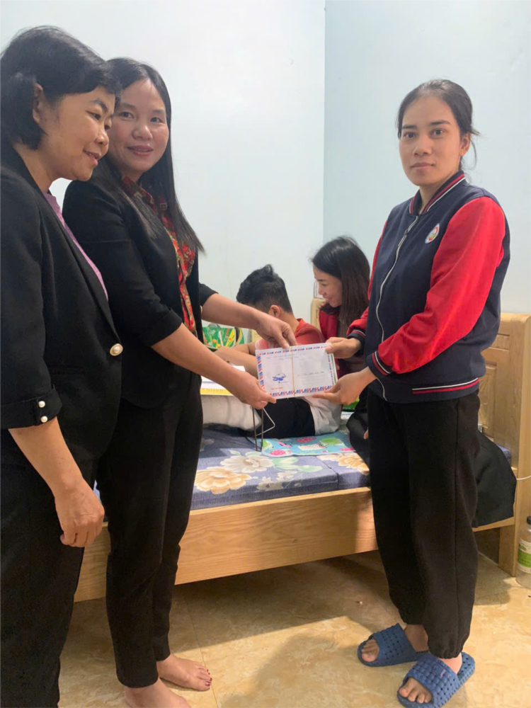 Ban giám hiệu, ban chấp hanh công đoàn và giáo viên chủ nhiệm thăm học sinh nghèo vượt khó