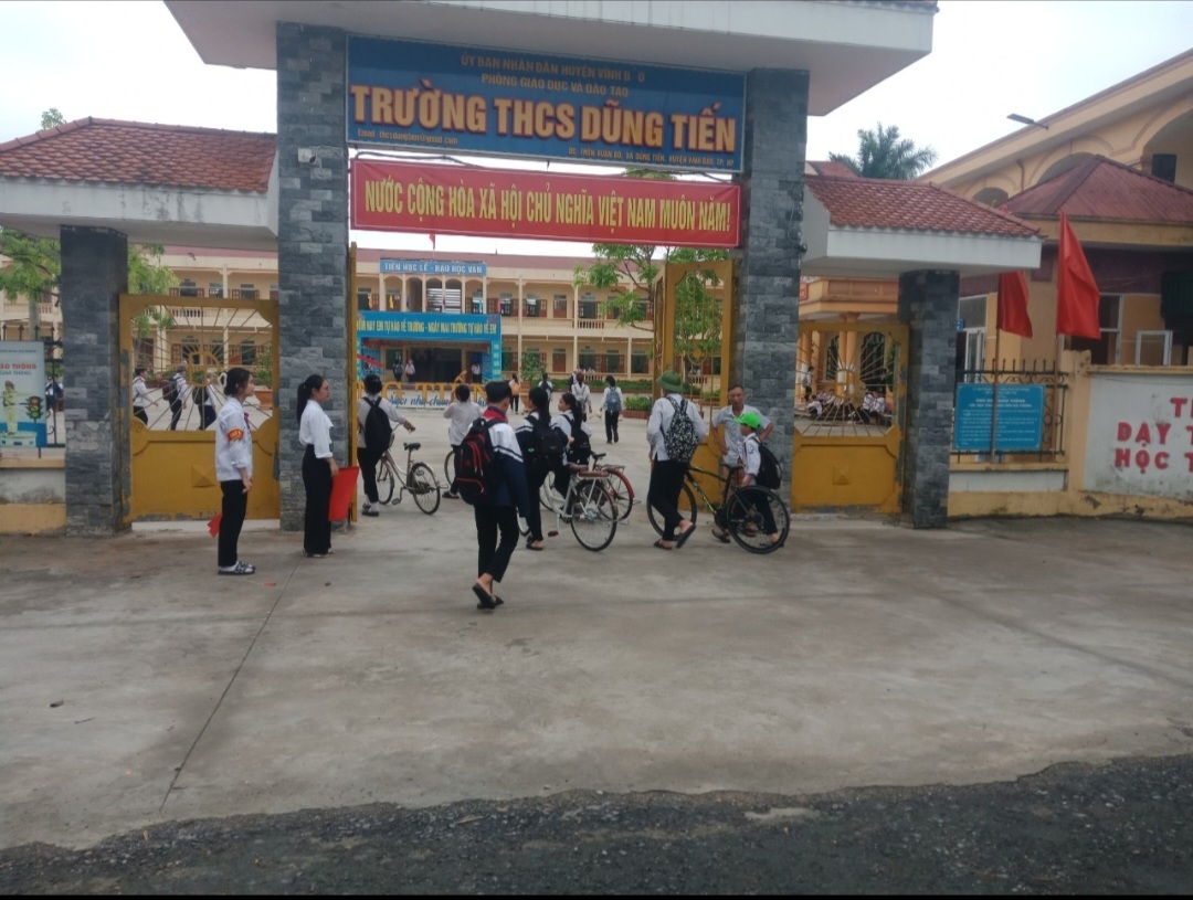 Hiện nay, an toàn giao thông đang là  vấn đề lớn được cả xã hội quan tâm. Đi khắp các nẻo đường gần xa khẩu hiệu “An toàn giao thông là hạnh phúc cho mọi nhà” như lời nhắc nhở, cũng là lời cảnh báo với những người đang tham gia giao thông, hãy chấp hành luật giao thông để đem lại an toàn cho bản thân và hạnh phúc cho gia đình. Trường THCS Dũng Tiến đã triển khai nghiêm túc mô hình “ Cổng trường an toàn giao thông”. Mô hình này được duy trì hằng ngày. Ban giám hiệu nhà trường đã thành lập tổ trực ban Giao thông với sự tham gia đầy đủ của các thầy cô và học sinh Sao đỏ. Tổ trực ban an toàn giao thông được chia làm 4 ca: Đầu giờ sáng học sinh đến trường; học sinh tan học buổi trưa, đầu giờ học buổi chiều và khi học sinh ra về.  Vì vậy các bạn đội viên Liên đội trường THCS Dũng Tiến hãy cùng thực hiện tốt An toàn giao thông nhé!