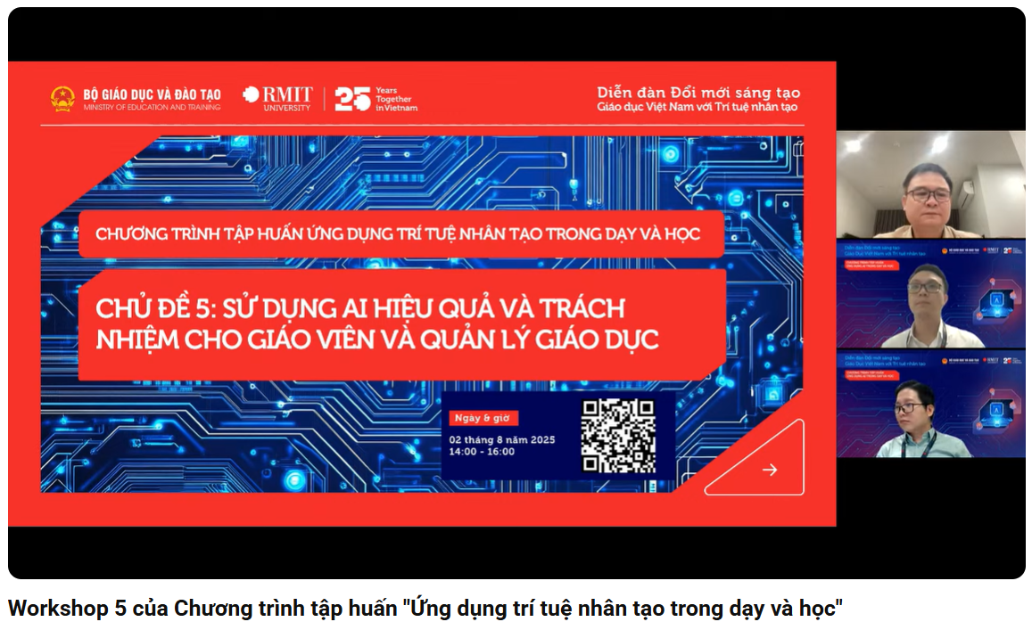 Chương trình tập huấn "Ứng dụng Trí tuệ nhân tạo (AI) trong dạy và học" năm 2025 do Ban dự án EEAI: "Đổi mới Sáng tạo giáo dục Việt Nam với Trí tuệ nhân tạo" của Đại học RMIT Việt Nam đề xuất và thực hiện, với sự tài trợ bởi Quỹ Đổi mới Chiến lược của Đại học RMIT, nhằm hỗ trợ nâng cao năng lực ứng dụng Trí tuệ nhân tạo (AI) trong giảng dạy và học tập.