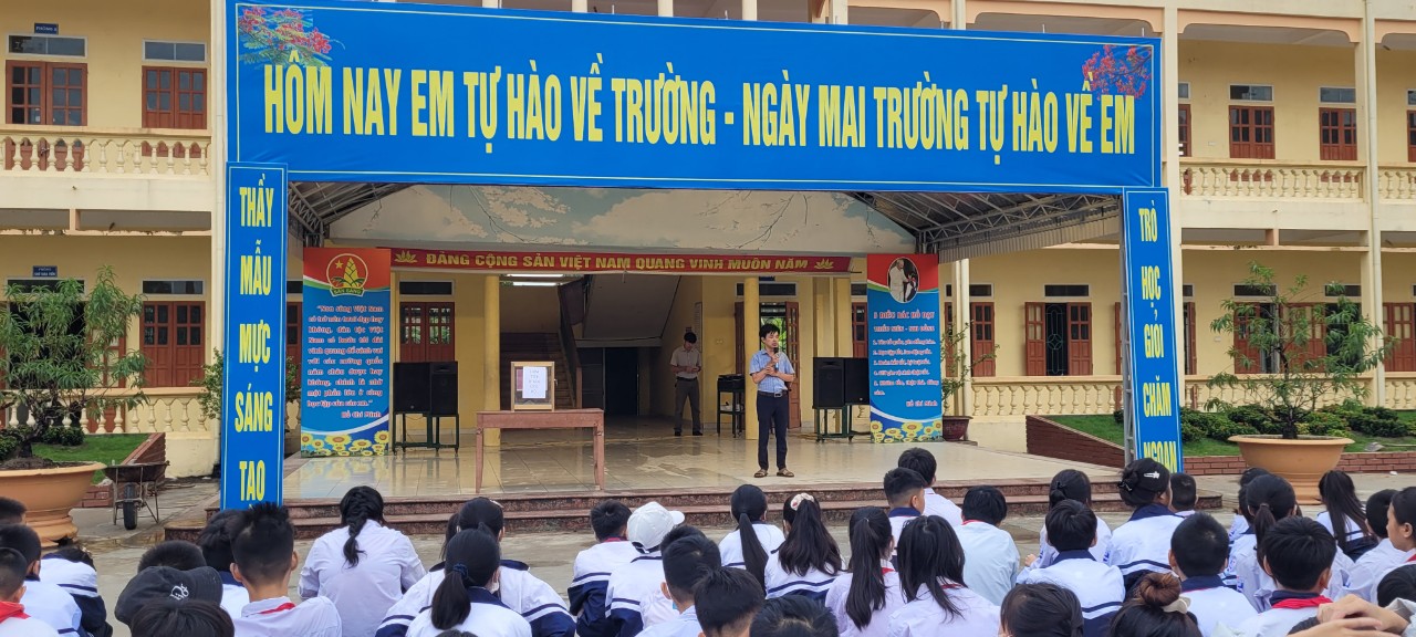 Thầy và trò trường THCS Dũng Tiến tham gia quyên góp ủng hộ bạn Mai Anh lớp 9A và bạn Vĩnh Nguyên lớp 8C.