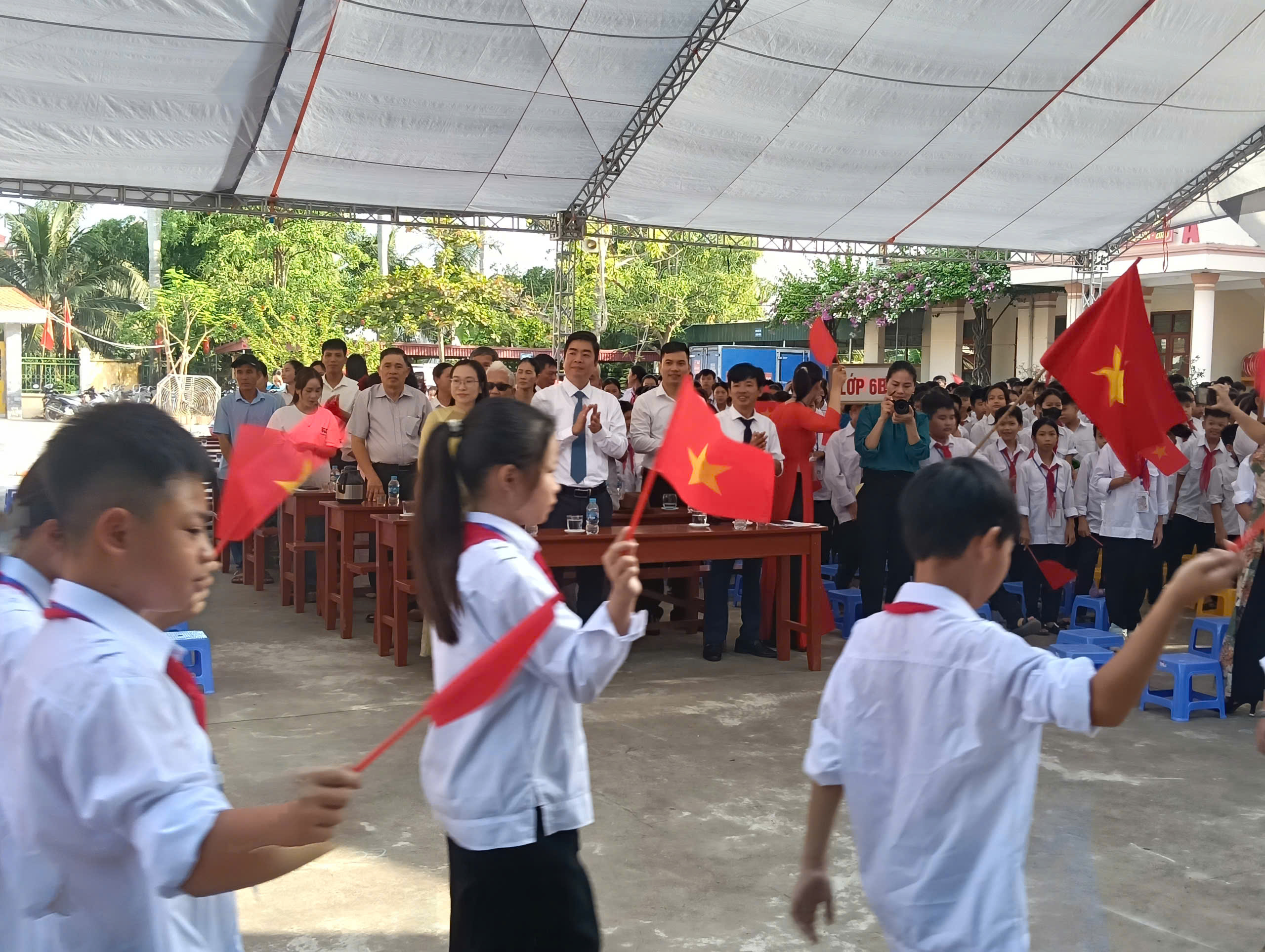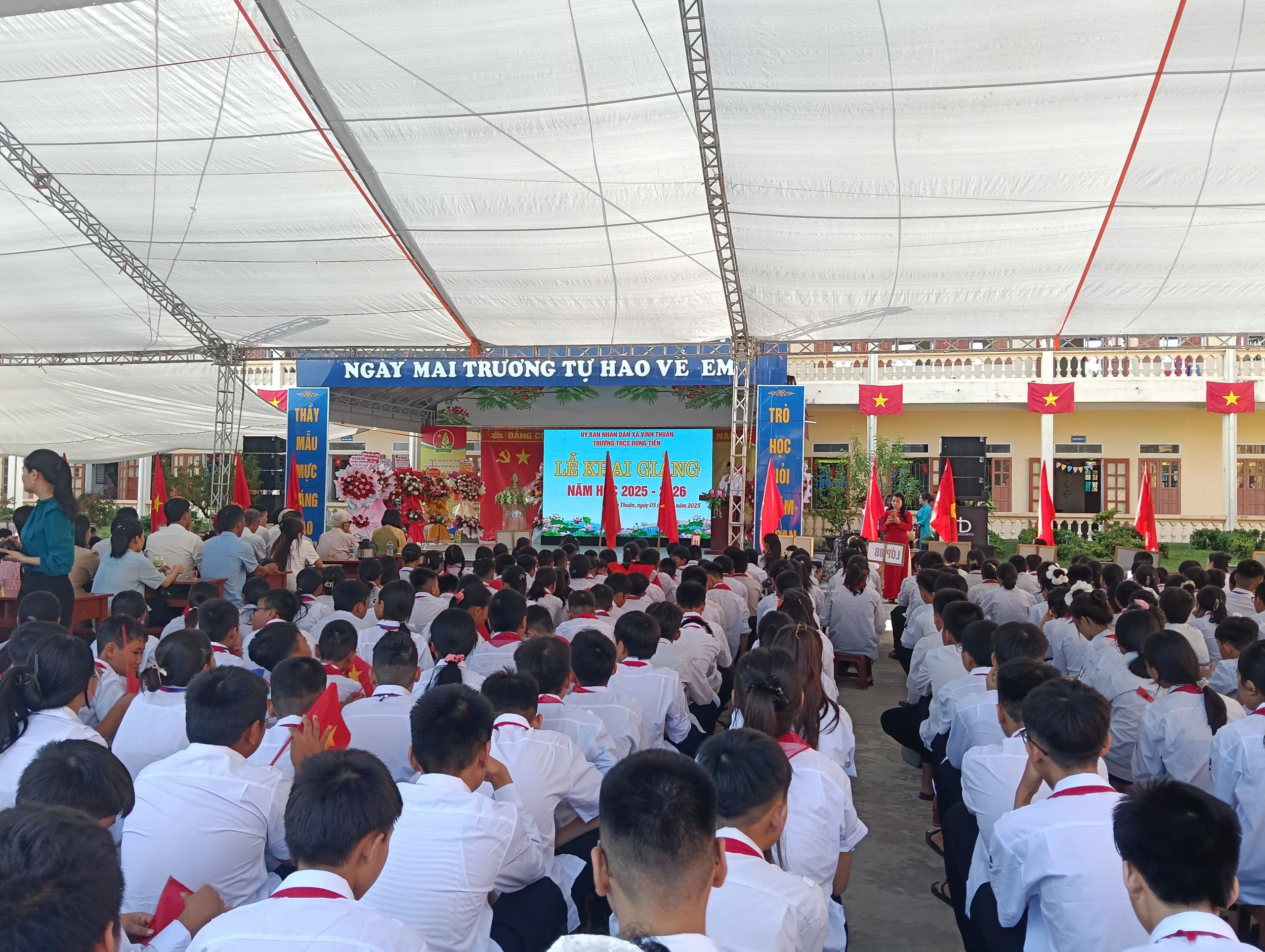 Thầy và trò Trường THCS Dũng Tiến, xã Vĩnh Thuận, TP.Hải Phòng trong nềm vui ngày khai giảng năm học mới 2025 - 2026